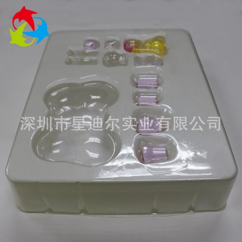 吸塑加工厂采用PET为原材料,经过吸塑工艺热成型后形成的塑料制品,再由刀模冲切出完整的羞羞视频在线看免费盒。白色羞羞视频APP网站大全下载羞羞视频在线看免费颜色透明,便于在销售中的展示,材质环保对环境无污染,是一款“绿色”产品。白色羞羞视频APP网站大全下载羞羞视频在线看免费采用上下盖设计形式,上盖透明便于观察产品,下盖白色内托便于装卡通羞羞视频APP网站大全下载,便于在销售中展示以供客户挑选。