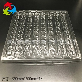 本款产品是依据客户提供的实物和相关要求而设计定制的一款吸塑产品,采用环保PET透明材质,在保证对环境无公害的同时也能便于客户在购买时的挑选。电子配件吸塑托盘在材质、尺寸、颜色等方面都可以依据客户要求而设计定制。电子配件吸塑托盘能够装多个实物,便于节省空间、节约成本,是大多数工厂的绝佳选择。