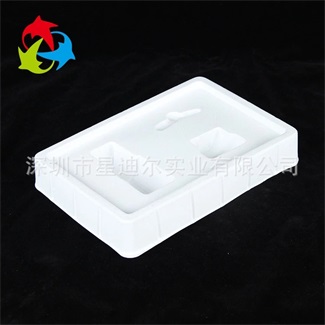产品特点:深圳吸塑厂采用白色PVC材质按照客户提供的实物而设计定制的样式经吸塑工艺热成型加工后形成的吸塑制品,本款产品环保无公害,尽显高端大气,为产品增值提升档次。生产PVC吸塑盒在运输过程中起到很好的保护作用,避免在运输过程中因碰撞、挤压而导致产品变形、损坏,从而影响公司形象。